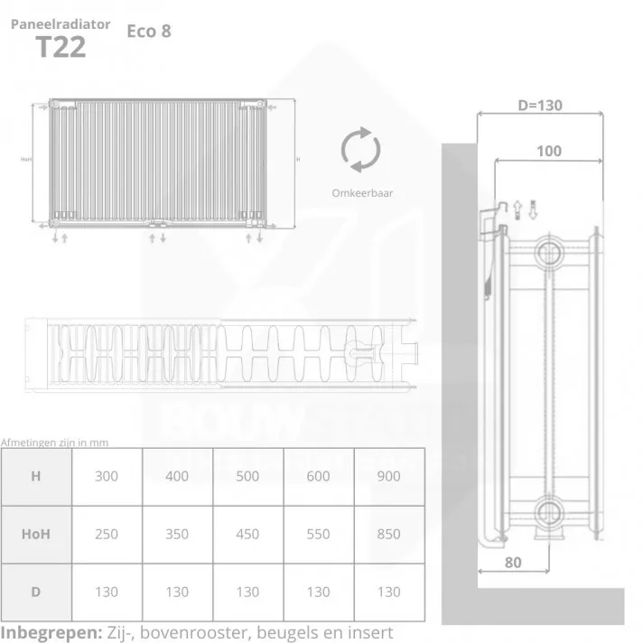 Om de installatie soepel en compleet te laten verlopen, adviseren wij een passende aansluitset mee te bestellen. Deze sets zijn speciaal afgestemd op dit type radiator en bevatten alle benodigde onderdelen voor een correcte aansluiting op uw cv-installatie:
