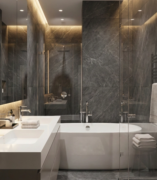 Basalt Graphite Mat 260×122 – Gerectificeerde Wandtegel – Moderne uitstraling, strak resultaat
