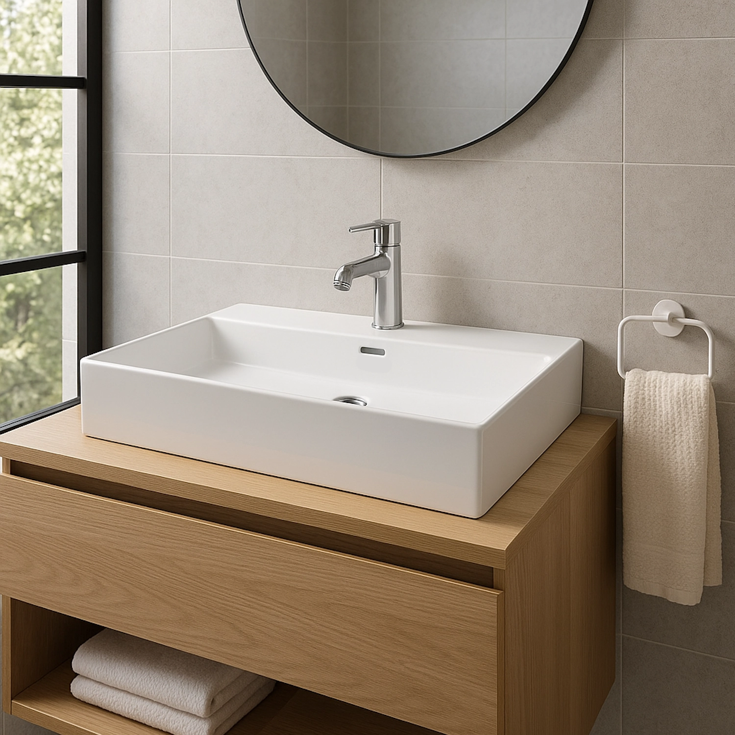 Deze DutchLine Tight wastafel van 80 cm met één kraangat biedt een perfecte balans tussen formaat en functionaliteit. De glanzend witte afwerking en rechte lijnen geven de wastafel een strak en eigentijds uiterlijk. Dankzij het kraangat is deze wastafel geschikt voor een standaard wastafelkraan. Het duurzame keramiek is eenvoudig schoon te maken en bestand tegen intensief gebruik. De breedte van 80 cm maakt het model geschikt voor middelgrote badkamers. Combineer met een DutchLine onderkast voor extra opbergruimte. Voeg een moderne touch toe aan je badkamer met deze stijlvolle wastafel.